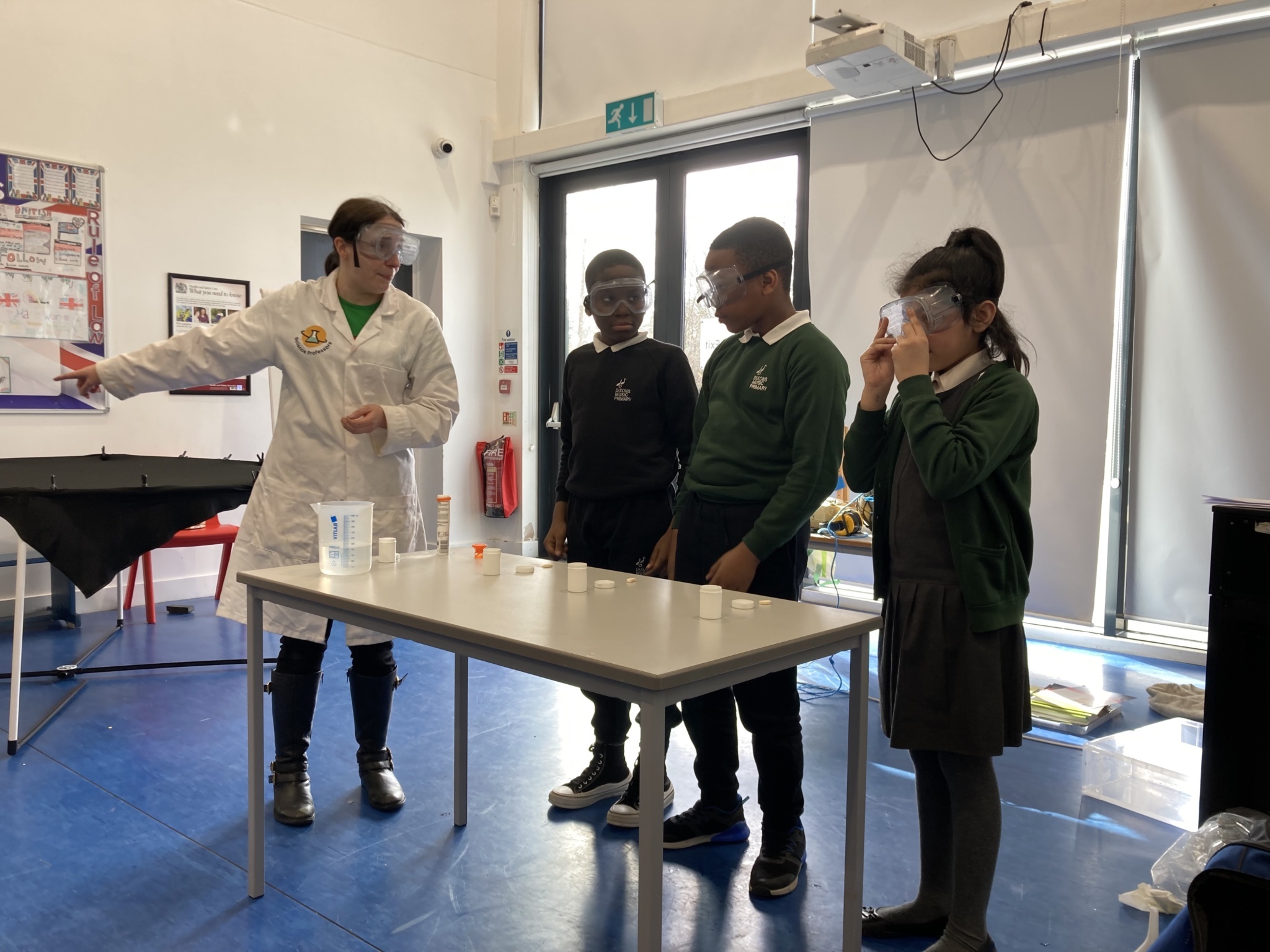 This week Dixons Music Primary have been enjoying science workshops from the Science Professors. Each year group has been getting involved with gravity nets to explore the solar system, whirlpools and the explosive effects of calcium, water and a sealed container!